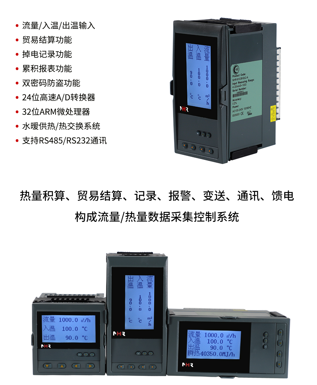 NHR-6610R系列系列液晶熱(冷)量積算記錄儀(配套型)是一款主要解決鍋爐自控、空調(diào)計(jì)量、完善流量測(cè)量精度而設(shè)計(jì)的產(chǎn)品,它以32位ARM微處理器為核心,配置高速AD和大容量存儲(chǔ)器的功能齊全二次儀表。