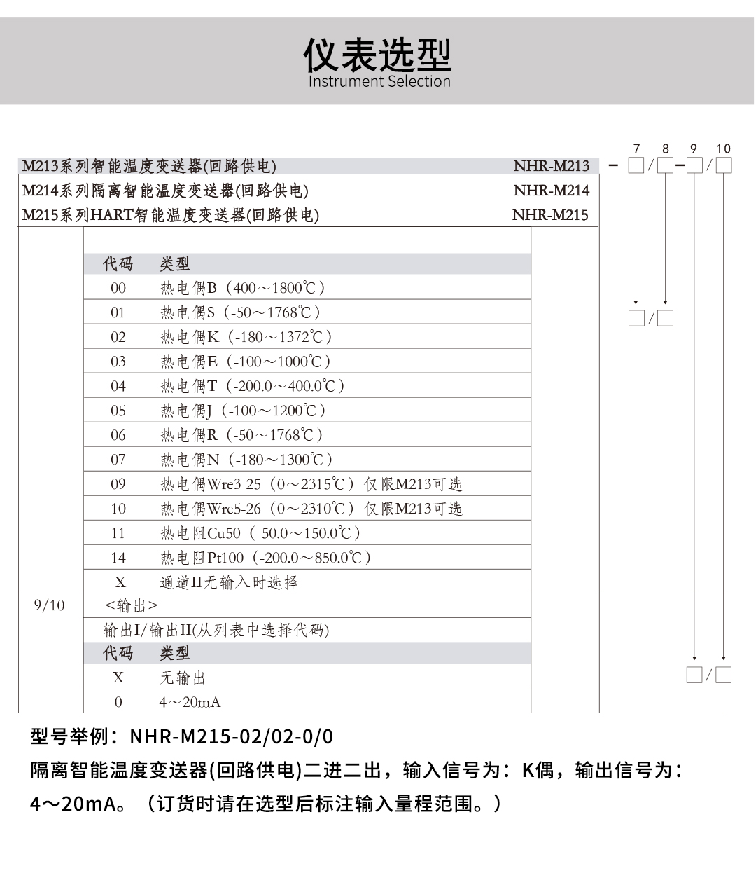 回路供電溫度變送器分為M213智能溫度變送器、M214隔離智能溫度變送器、M215 HART智能溫度變送器,變送器將現(xiàn)場的熱電阻或熱電偶信號經(jīng)過隔離放大處理,轉(zhuǎn)換為與溫度成線性的二線制4-20mA(HART)信號輸出至控制系統(tǒng)。