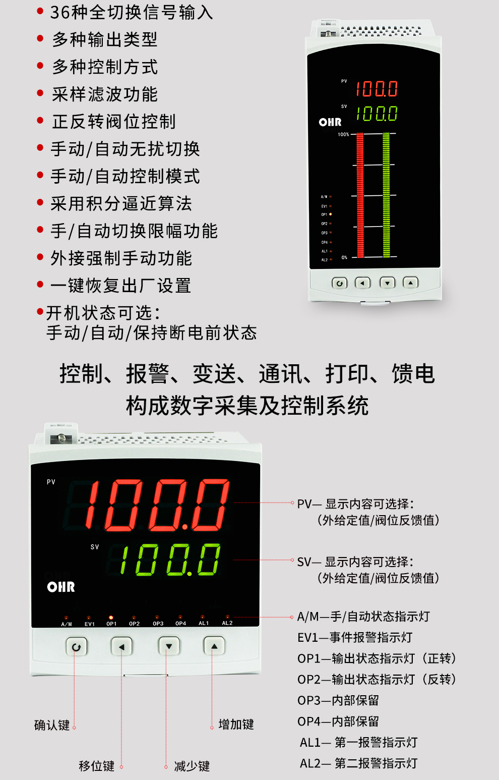 OHR-E500系列手動(dòng)操作器適合作為DCS系統(tǒng)回路調(diào)節(jié)控制輸出和智能調(diào)節(jié)器控制輸出的備用操作器使用,可同時(shí)輸入和顯示給定信號(hào)和反饋信號(hào),可與各類傳感器、變送器配合使用。