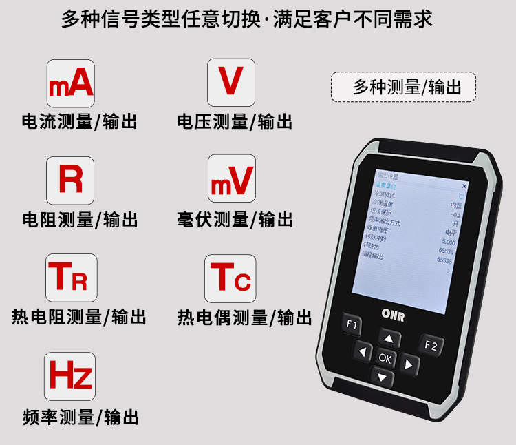 OHR-C00多功能校驗(yàn)儀是帶測量與輸出的過程信號(hào)校驗(yàn)儀。產(chǎn)品具有高精度、信號(hào)任意切換、續(xù)航能力強(qiáng)、大彩屏占比、小巧可裝口袋等特點(diǎn),產(chǎn)品功能設(shè)置簡單易用,為使用者帶 來了更便捷的體驗(yàn)。