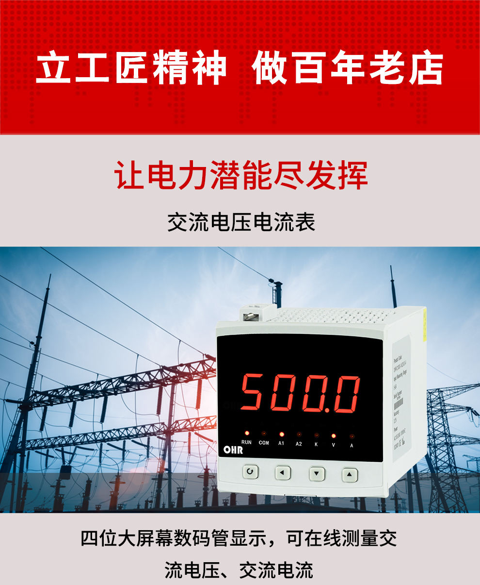 OHR-C200系列交流電壓/電流表為新 一代可編程智能儀表,它采用大規(guī)模集成電路,應(yīng)用數(shù)字采樣技術(shù),對單相電氣線路中的電壓、電流進(jìn)行實(shí)時(shí)測量、顯示和控制,并通過RS485接口或模擬量變送輸出接口對被測量電量數(shù)據(jù)進(jìn)行遠(yuǎn)傳。