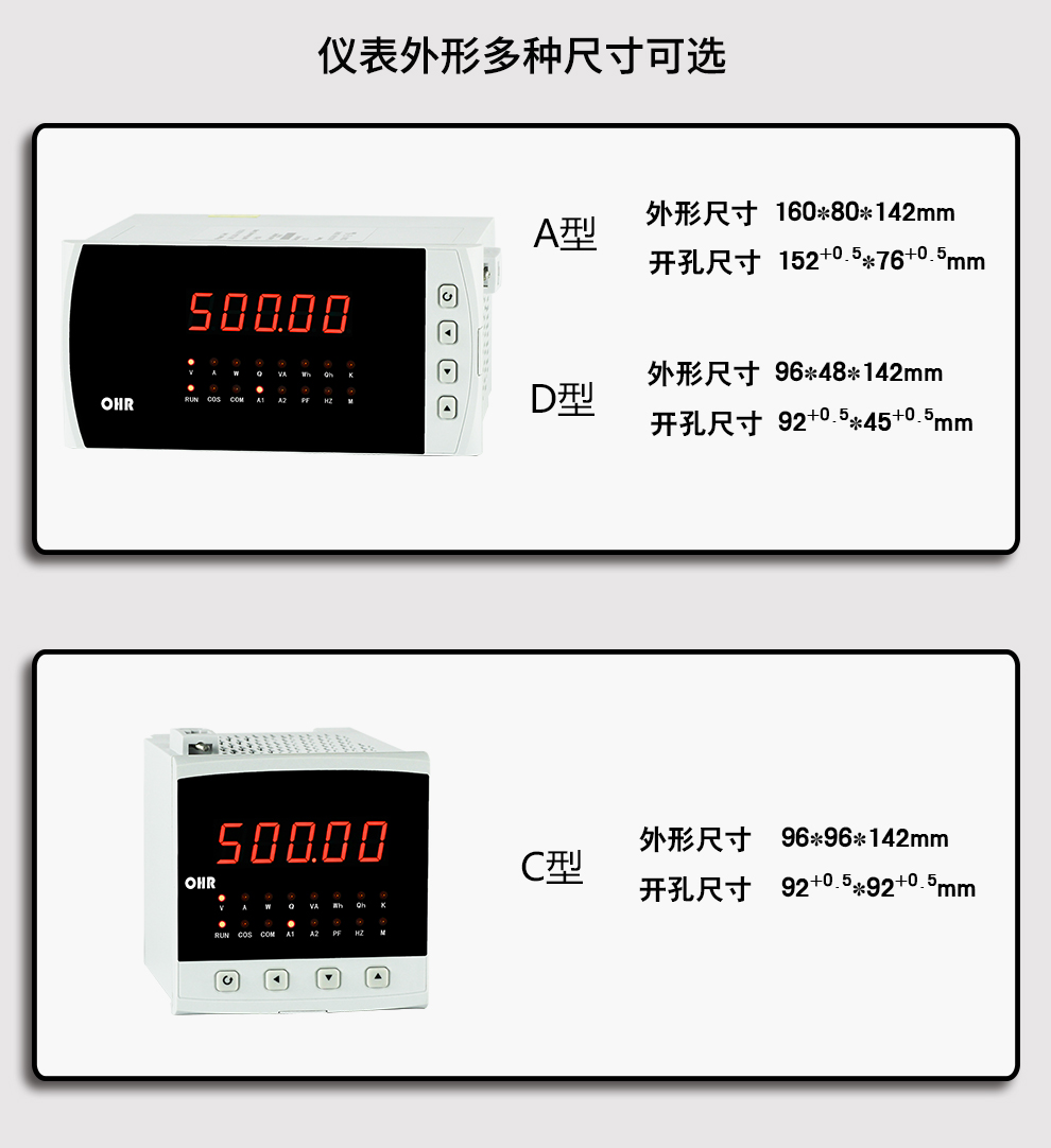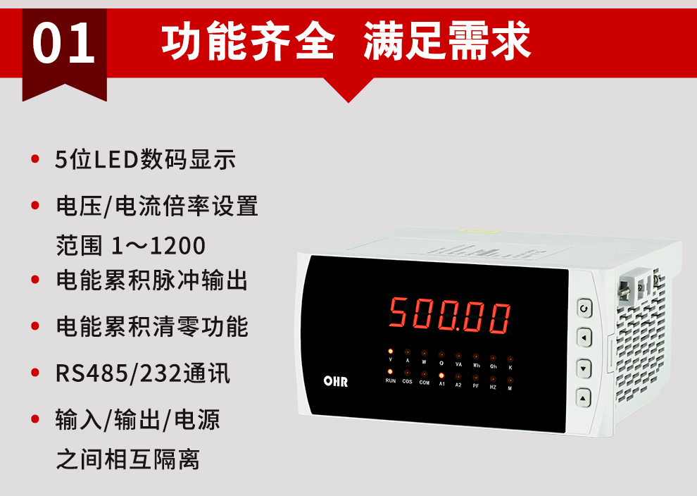 OHR-C100系列單相電量表為新一代可編程智能儀表,它采用大規(guī)模集成電路,應用數(shù)字采樣技術,對單相電氣線路中的電壓、電流、有功、無功、功率因素、相位值、頻率、有功電能、無功電能及視在功率進行實時測量與顯示。