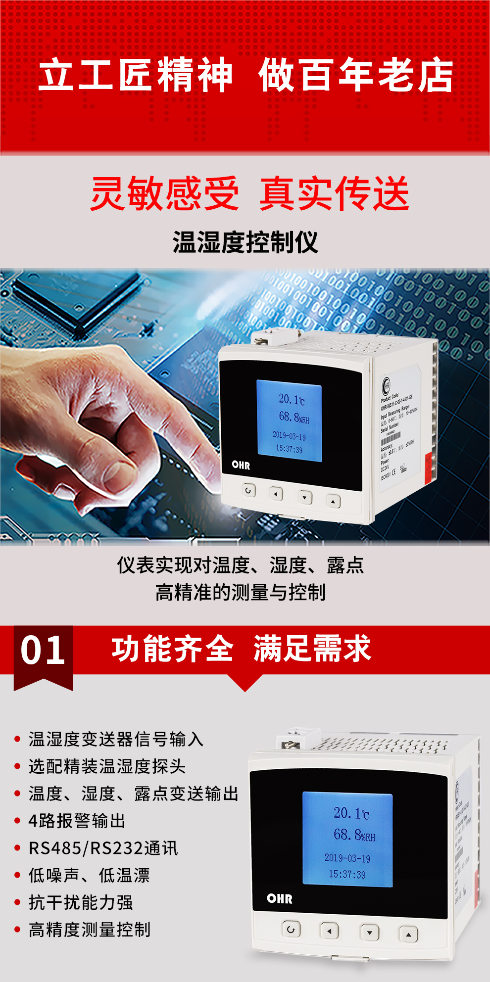 OHR-WS10系列溫濕度控制儀以先進(jìn)的32位ARM處理器為核心,采用進(jìn)口高性能溫濕度傳感器,可同時(shí)對(duì)被測(cè)環(huán)境的溫度、濕度進(jìn)行測(cè)量和控制,并可通過溫、濕度計(jì)算出露點(diǎn)。它具有精度高、穩(wěn)定性強(qiáng)、響應(yīng)速度快等特點(diǎn),適用于通訊機(jī)房、辦公室、醫(yī)院、檔案館、博物館、賓館、樓宇自控等場(chǎng)所的溫濕度測(cè)量。