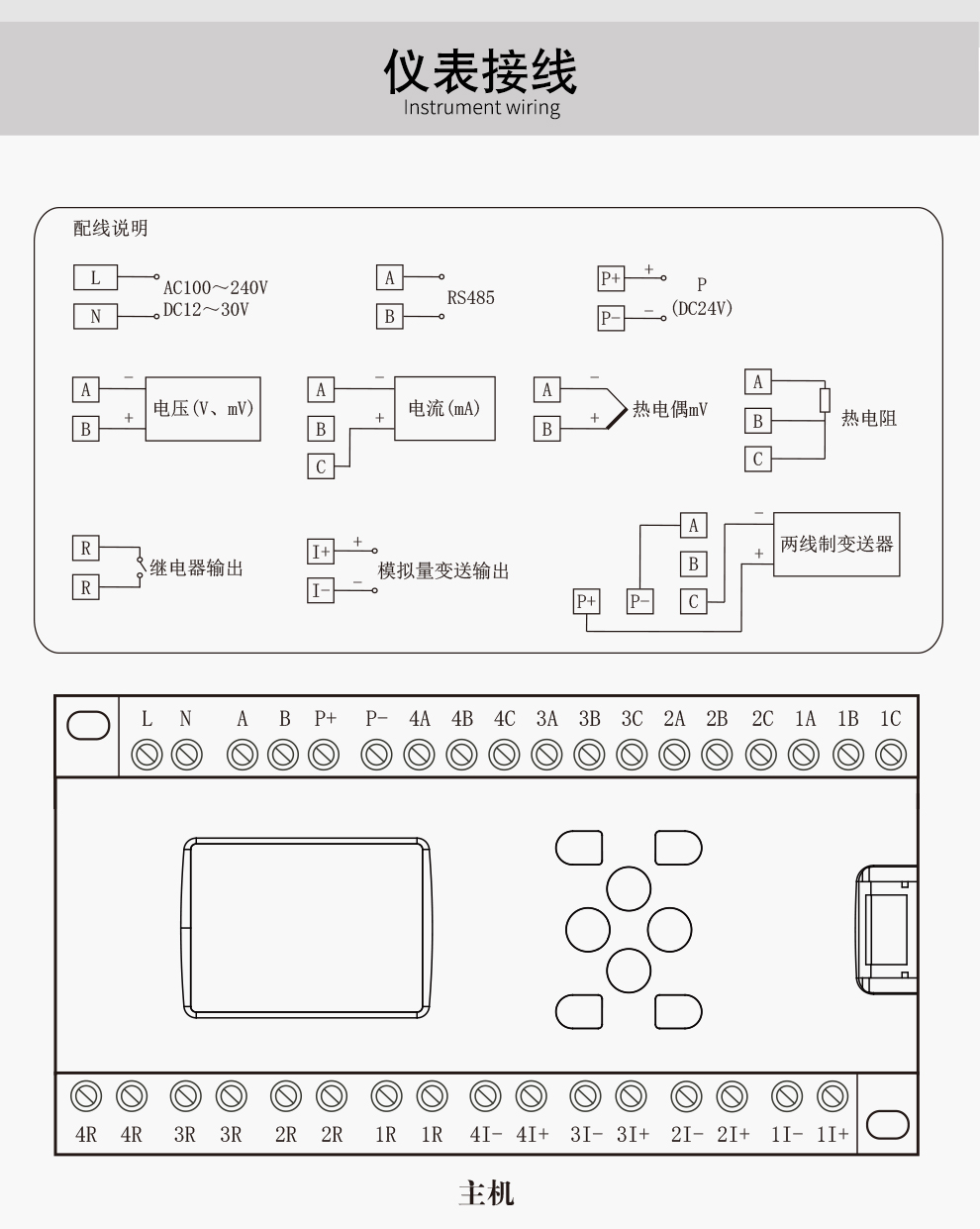 OHR-PR40系列數(shù)據(jù)控制器多重保護(hù)和隔離設(shè) 計(jì),抗干擾能力強(qiáng),可靠性高。儀表采用主副機(jī)結(jié)構(gòu)設(shè)計(jì),主機(jī)可提供4路萬(wàn)能信號(hào)輸入,通道間 相互隔離;4限報(bào)警輸出、4路變送輸出,饋電輸出、RS485通訊、以太網(wǎng)通訊等功能,連接副機(jī)可將I/O容量 擴(kuò)展至8路輸入和8限報(bào)警輸出、8路變送輸出。