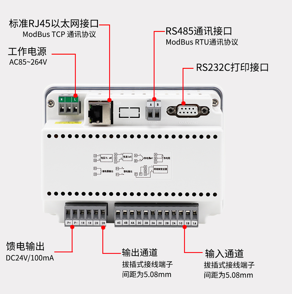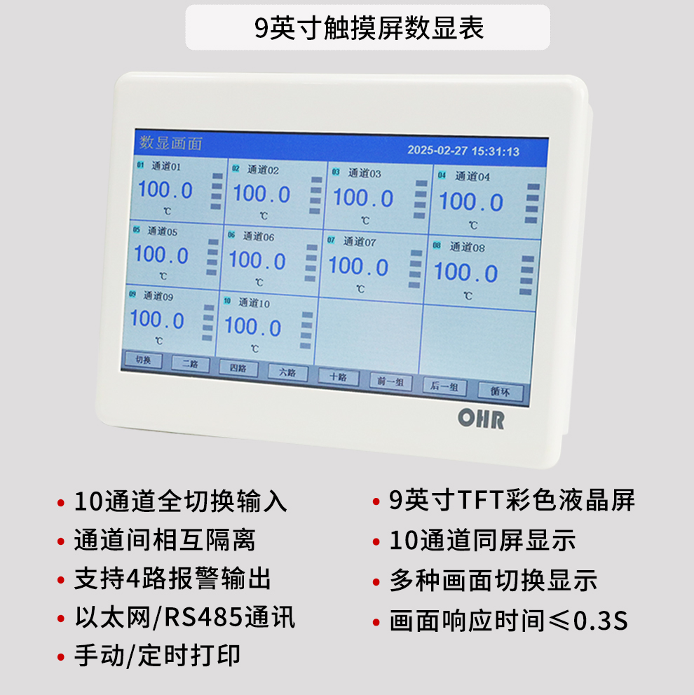 OHR系列觸摸屏數(shù)顯表采用新型大規(guī)模集成電路,對輸入、輸出、電源、信號采取可靠保護(hù)和強(qiáng)抗干擾設(shè)計(jì)。4路萬能信號輸入(可組態(tài)選擇輸入:標(biāo)準(zhǔn)電壓、標(biāo)準(zhǔn)電流、熱電偶、熱電阻、毫伏等)??蓭?路報(bào)警輸出,1個(gè)饋電輸出,RS485通訊接口,以太網(wǎng)接口,微型打印機(jī)接口;具有強(qiáng)大的顯示功能,實(shí)時(shí)測量顯示,棒圖顯示,報(bào)警狀態(tài)顯示,組態(tài)畫面顯示等。
