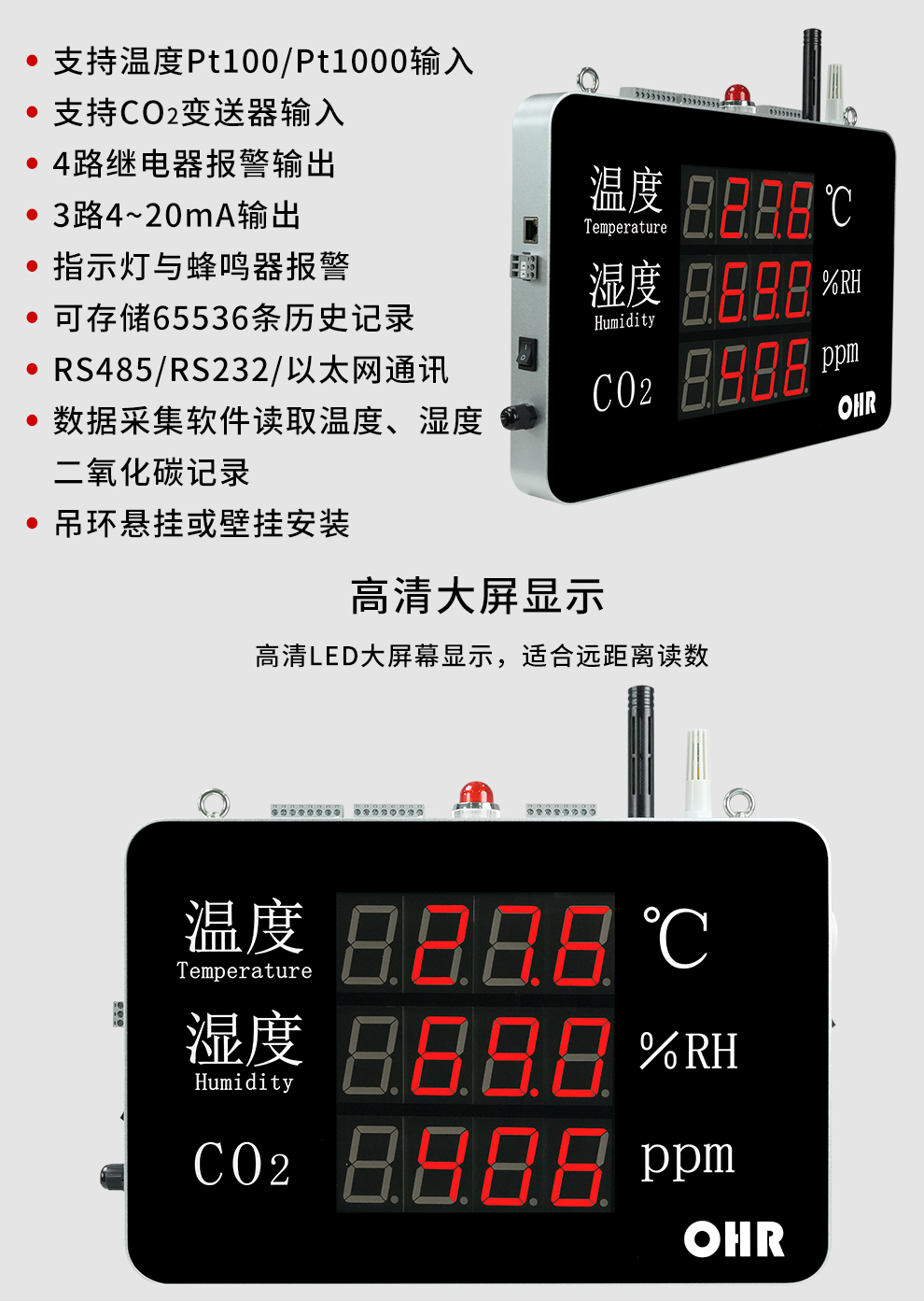 OHR-WS54系列大屏二氧化碳溫濕度記錄儀